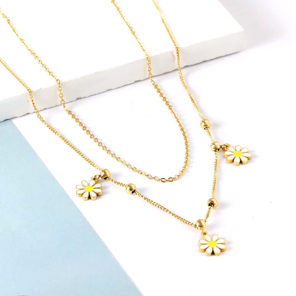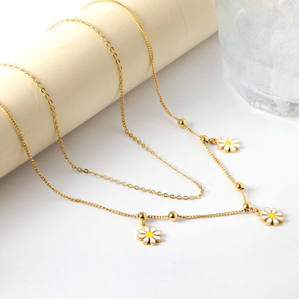 Fabriqué en acier inoxydable ou en plaqué or, le collier fleur doré offre une excellente résistance et une belle durabilité. L’acier inoxydable est particulièrement apprécié pour sa robustesse et sa capacité à conserver son éclat dans le temps. Le plaqué or, quant à lui, apporte une finition lumineuse et chaleureuse, proche de l’or véritable. Ce mélange de qualité et d’esthétique fait de ce bijou un choix judicieux pour un usage régulier.